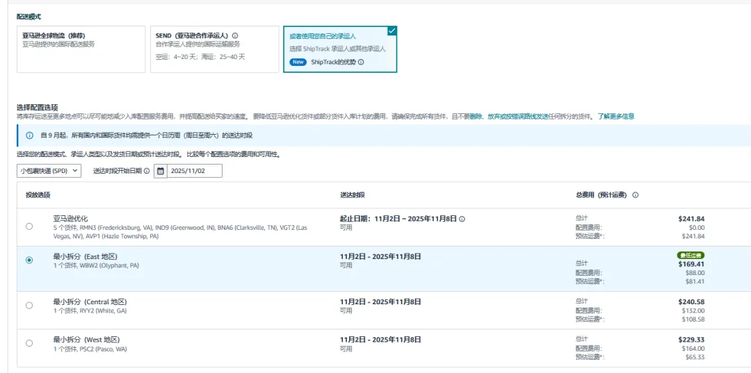 部分货件拆分:费用较低(注意:2025年2月20日起,标准尺寸商品没这个选项了)