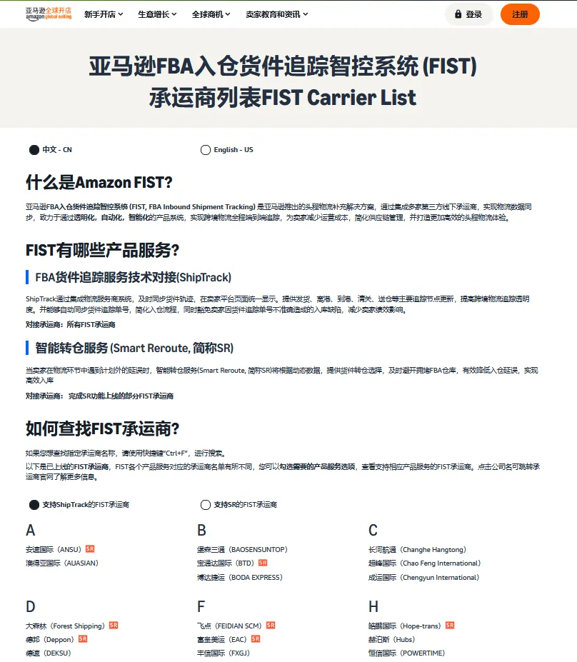 亚马逊推出的FBA入仓货件追踪智控系统,集成了近100家第三方承运商,实现物流数据一站式同步。