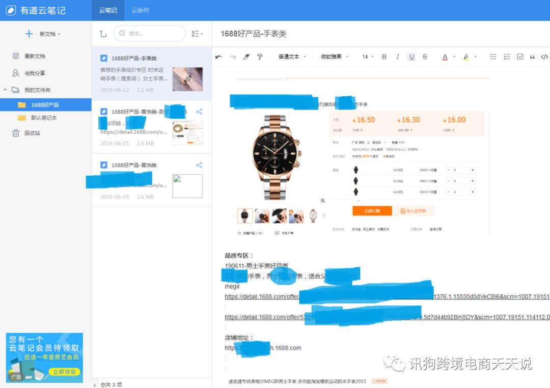 大家平时可以在选品的过程中用云笔记把这些好的产品和店铺记录下来。