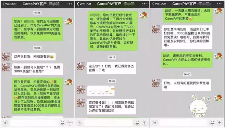 “刚刚又帮一位 CaresPAY大使美女客户完成了提现操作,资金立马就到账了,还给她省了不少钱,让她开心的不得了,说我态度好,让我们领导给我涨工资哈哈~”