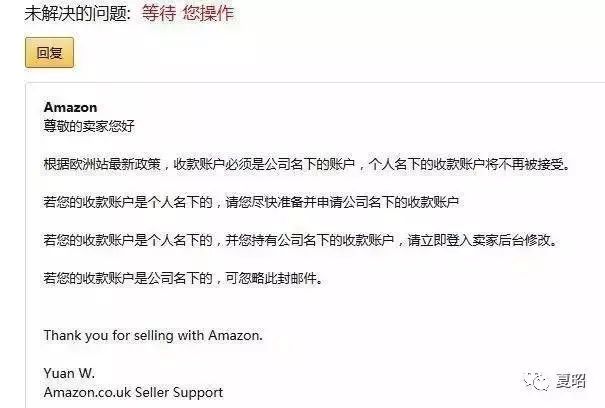刚才说到的注册第三方收款账户,现在amazon账户的注册到最后一步是要求绑定收款银行。收到有卖家的收到amazon的邮件截图如下: