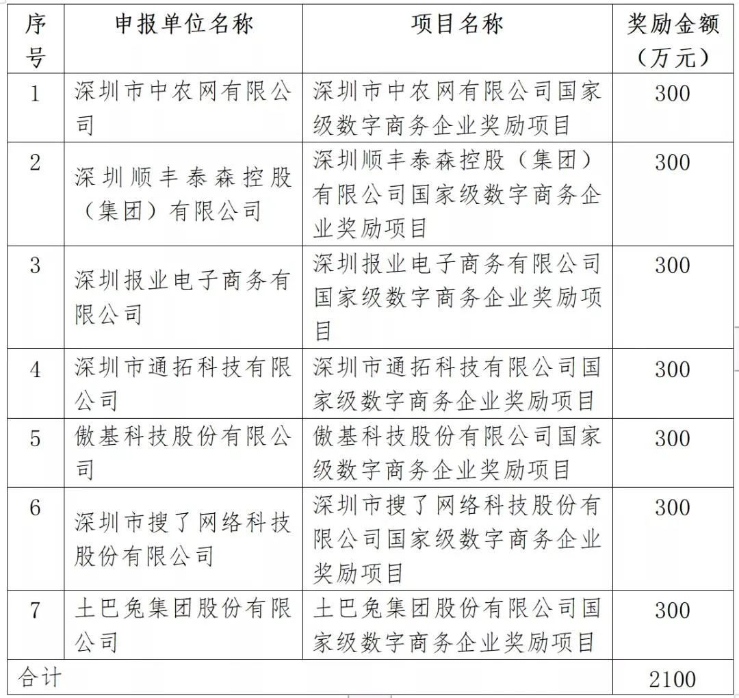 通知表明,经受理、审核、公示等程序,现下达2021年电子商务创新发展扶持计划国家级数字商务企业奖励项目奖励计划,安排资金2100万元对7个项目予以奖励: