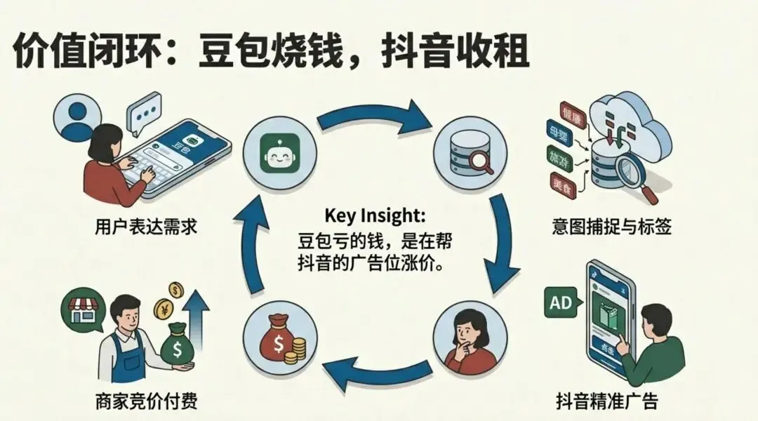 说白了,豆包亏的钱,是在帮抖音的广告位涨价。
