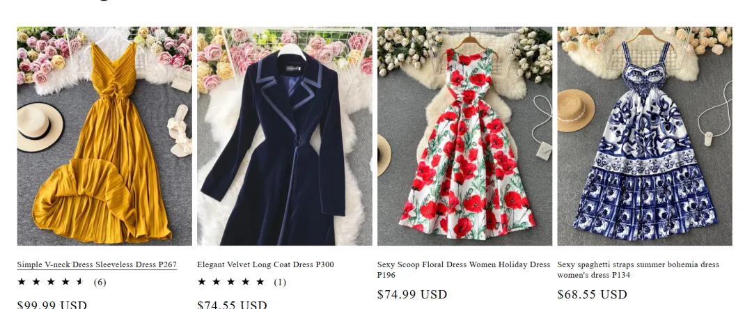 该站主要售卖欧美风格的连衣裙和女性服饰,视觉设计风格吸睛,配色明快,产品排列逻辑清晰,极大提升了用户的浏览深度。