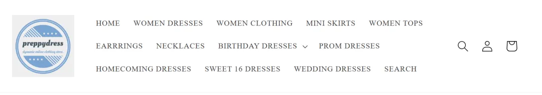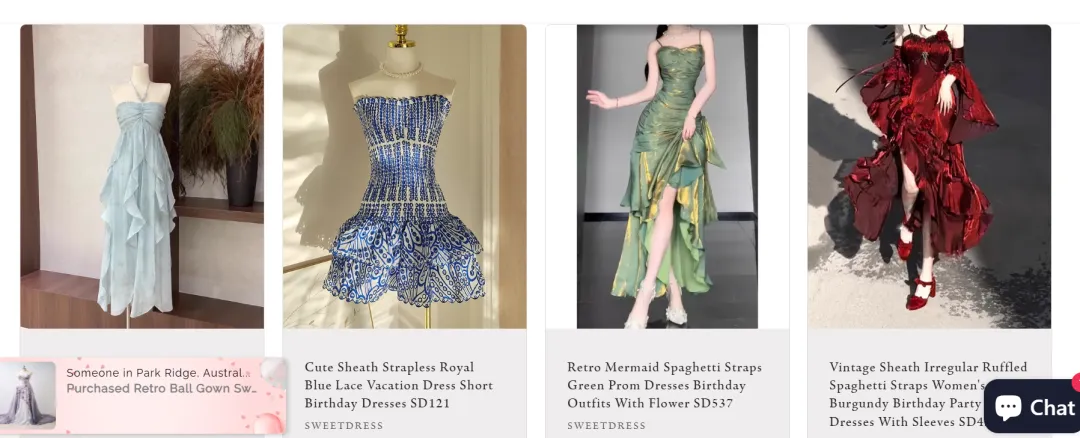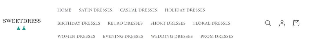 这个网站我很好奇为啥不把域名sweetdress.com也买下来用,而只是用一个shopify的默认二级域名,这个网站的操作思路和上个网站基本是雷同的,网站的设计方面也是非常的简陋。