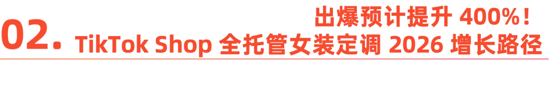 从这个角度来看,TikTok Shop全托管模式不仅赋能商家实现爆款“一站卖全球”;又深入布局了本地托管与海外仓业务,无疑是服饰卖家出海的优质选择。随着新市场的持续拓展和本地布局的不断深化,依托TikTok Shop强大的内容创作能力及全方位的商家赋能,2026年,TikTok Shop全托管女装有望迎来新的增长高峰。