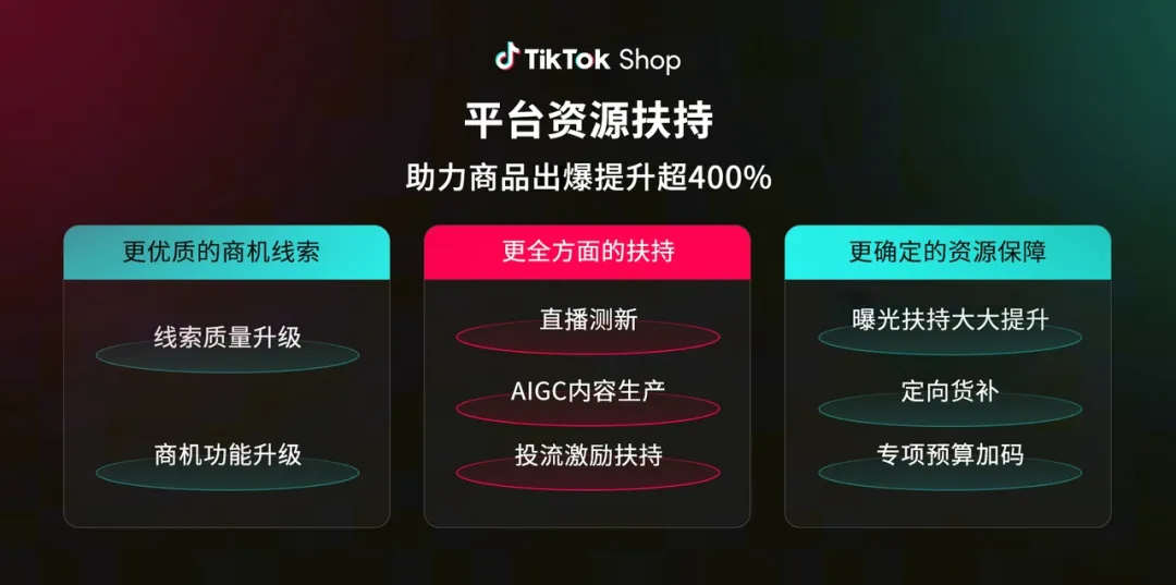在这次交流会上,TikTok Shop也给全托管女装商家推出了一整套扶持政策。平台不仅会为商家提供更优质的商机线索,还带来了直播测新、AIGC内容制作、投流激励等多维度支持,同时还有定向货补、专项预算加码等实打实的资源保障,助力商品爆款率提升超400%。