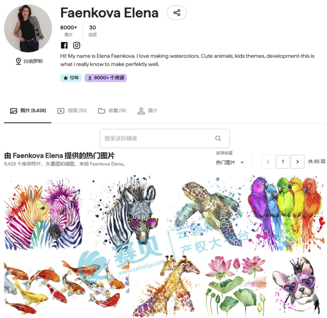 Elena Faenkova(白俄罗斯公民),资深职业插画师,自2001年起从事插画工作,拥有超过15年儿童书籍插画经验,其作品以动物、自然、童年趣味主题为主,风格为水彩手绘,广泛应用于纺织、文具、装饰等跨境热门产品类目。