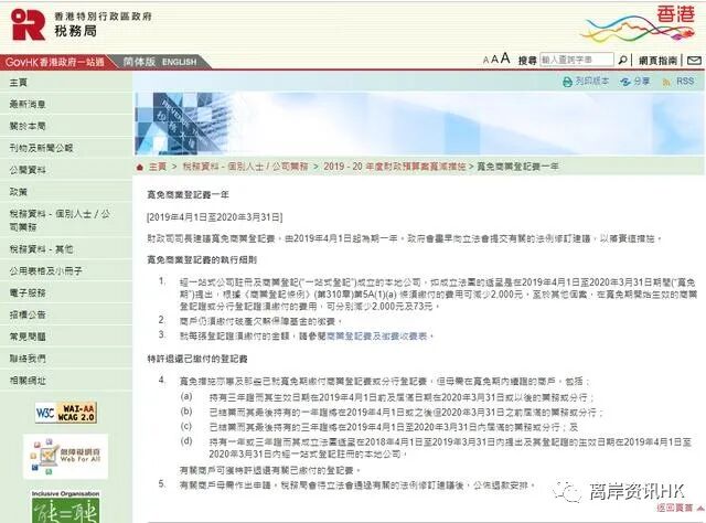 会上,香港财政司司长陈茂波建议豁免商业登记证:自2019年4月1日起,香港商业登记证豁免2000港元至2020年3月31日止。届时注册香港公司及年审都将豁免2000港元。