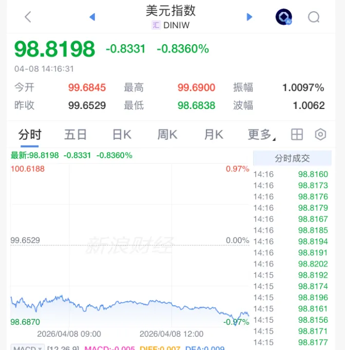 市场分析普遍认为,本轮人民币走强的直接驱动力来自美元的“退潮”。隔夜美元指数大幅下挫约0.9%,跌至四周低位,主要因为中东紧张局势出现缓和迹象,相关停火谈判取得进展。这不仅降低了市场的避险情绪,也带动美债收益率回落,使得美元的吸引力相对减弱。