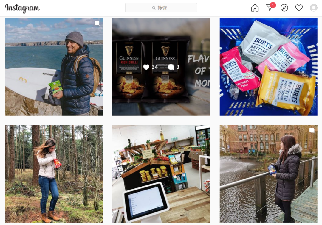 (Instagram 上小微网红们为薯片品牌 Burts 做宣传)