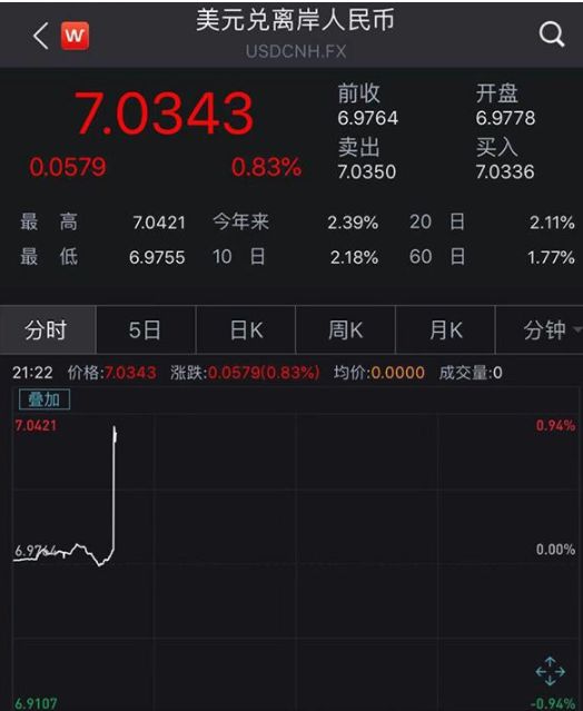 没有一丝丝防备,今天人民币在岸、离岸汇率双双破7。