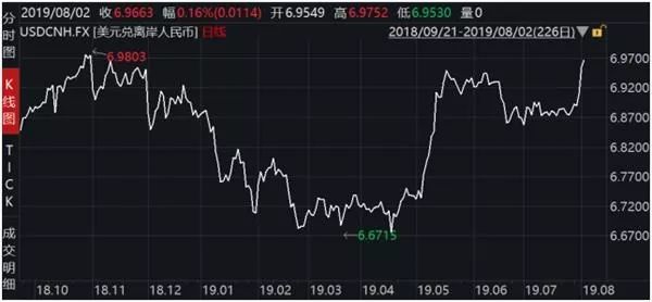 回顾过去人民币历史,2018年11月初人民币汇率突破6.98关口,随后开启快速升值模式,至2019年3月21日,离岸人民币报6.6715。