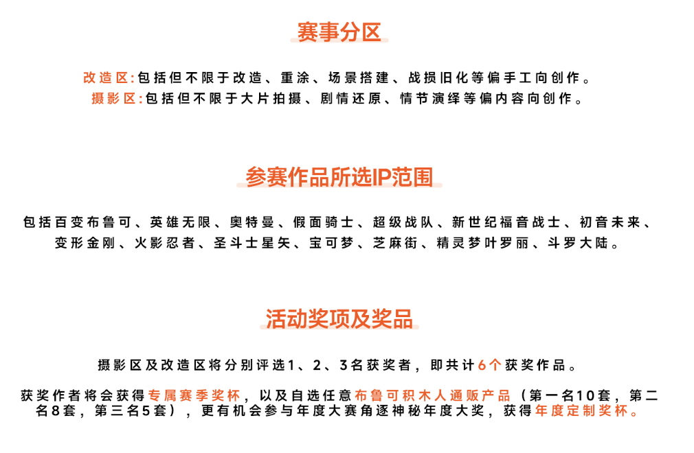 为了改变这一局面,增强品牌效应和用户粘性,布鲁可也开始走发力社区运营、用户共创路线。国内方面,该品牌于今年1月1日推出了BFC创作比赛。赛事分为改造区和摄影区,入围获奖作品也被展出在了布鲁可的各大参展台上,实现了用户UGC社区运营的效果,并推动该品牌被更多人所熟知。