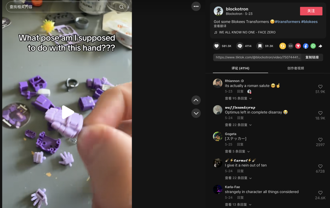 此外,早在去年1月,布鲁可就开设了社媒账号,发布了大量变形金刚系列玩具的定格动画,重现了变形金刚从80年代G1系列到后期真人和动画电影中的经典场景,让美国各年龄段的粉丝都能找到共鸣。