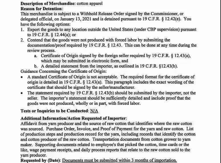 虽然事情没有大面积的发生,不过已经有些公司不敢接新疆棉了。包括一些货代公司也反复强调,确保运输中不含有新疆棉,不然清关时,可能存在被美国海关扣押或刁难的危险。