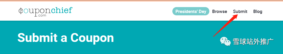 其实很简单,一般Deal站大部分都有submit的按钮,比如Couponchief这个网站的发帖提交按钮就在右上角。