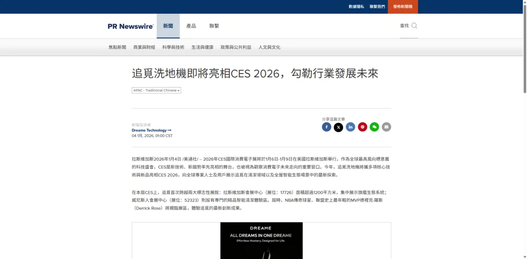 好的事件和内容,需要完善的传播链路才能最大化价值。追觅在CES 2026的营销,构建了“PR官方背书+社媒精准预热+媒体自发转载”的全链路闭环。