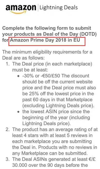 去年的亚马逊会员节Prime Day,活动持续了30小时,并且Prime Day的受欢迎程度一直在增长。相信今年的时间会更长。卖家们最好不要错过这个机遇,这不,往年的Prime Day是安排在7月份,一般在5月份开始报名,但是今年2018年各站点(US,EU,JP)Prime Day的DOTD已经可以开始 自主提报 了!