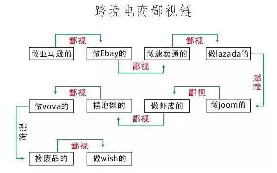 而现在,鄙视链衍生到了跨境圈,这不,前几天一张跨境电商平台间的鄙视链火了。