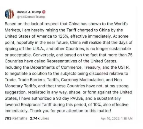 美东时间2025年4月9日,特朗普宣布将中国商品关税从原本的104%提升至125% ,同时宣布对寻求谈判的超75个国家和地区暂停加征关税。这波猛增直接冲击了跨境电商行业,尤其是在亚马逊平台上的中国卖家,面临着前所未有的挑战。