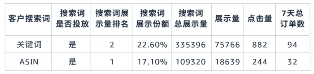 搜索词展示量份额报告显示了各个搜索词在不同广告活动、投放方式和匹配类型下的展示、点击和转化数据,可以帮助我们更全面地去分析关键词,了解自身竞争力和市场潜力大小,找到CPC的“优解”。