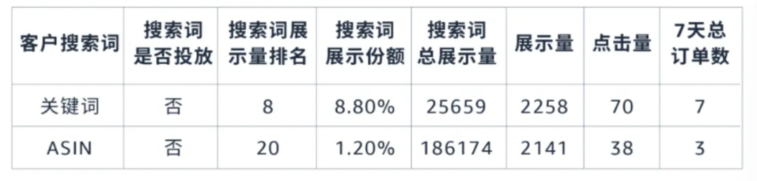 如果ACOS数值较低,点击量和展示量较高,但展示量份额不高。此时可以增加投入,拓展同类流量。