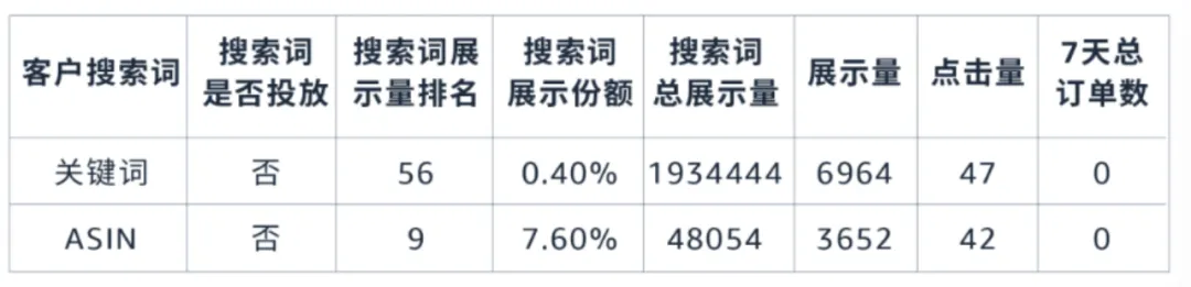 ● 当ASIN在多个广告活动中,展示量和点击量均高,但转化率很低,意味着ASIN消耗了较多无效预算,此时应及时停止推广,先优化ASIN。