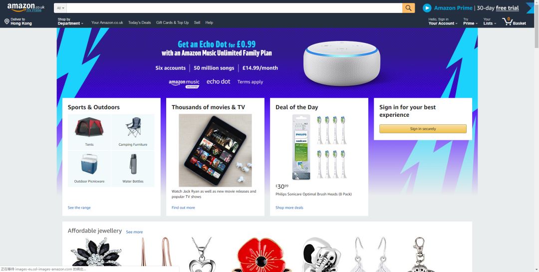 上图为亚马逊官网首页,显而易见,广告不仅占据了最大版面,还不浪费丝毫页面空隙,页面顶端及右上角的广告也十分吸睛。