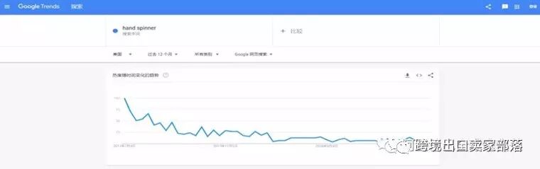 以hand spinner(指尖陀螺)为列,热搜度越来越下降,那就不值得推荐,避免当产品已经不再受追捧。