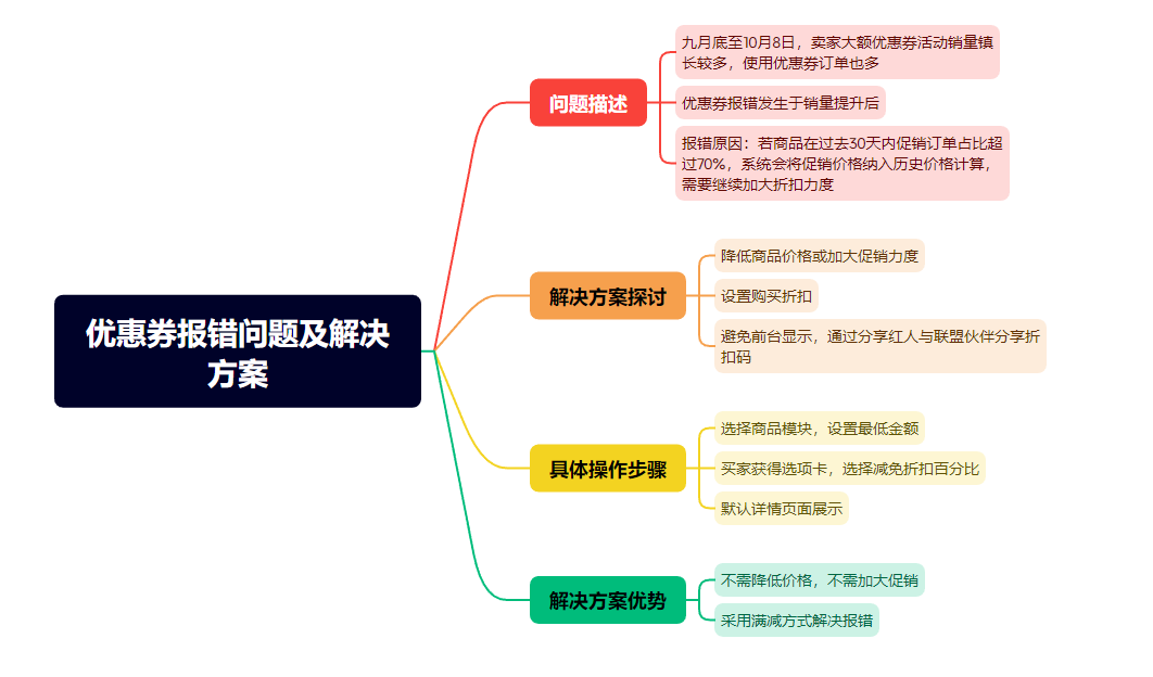 最近有一个卖家, 刚在9月底到10月6日跑了个BD , 在10.7~10.8 跑了个秋促的会员专享折扣,大促一结束跑了一个和大促折扣后一致优惠券,这时候单量和平时比已经从20多单翻到了40多单快50单了。就在这时优惠券出现如下报错,该如何解?
