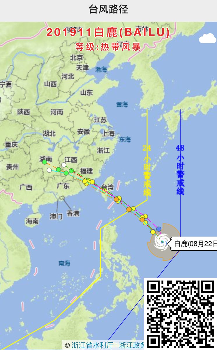 目前,距离台湾省花莲市东南方向约1200公里的洋面上。预计“白鹿”将以每小时20公里左右的速度向西北方向移动,强度逐渐加强,最强可达强热带风暴级或台风级(10-12级,28-35m/s),逐渐向我国东南沿海靠近,并可能在这一带沿海登陆。