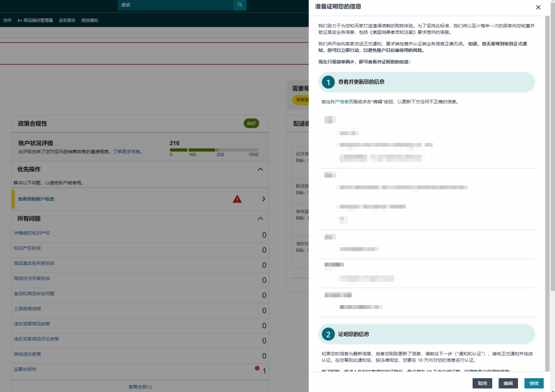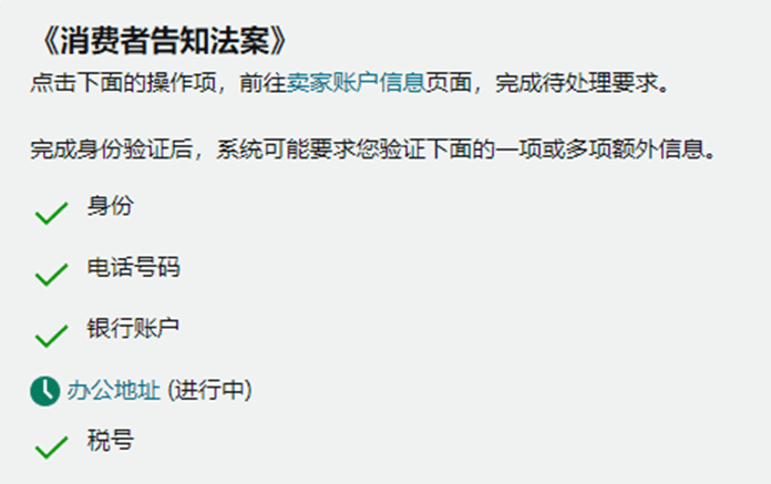 对于已经完成过消费者告知法案验证且不需要修改信息的卖家:如果已经提供了最新的企业信息并且通过了亚马逊的验证,只需要在《消费者告知法案》进行年度规律性验证时,及时配合提供信息并进行验证操作即可。