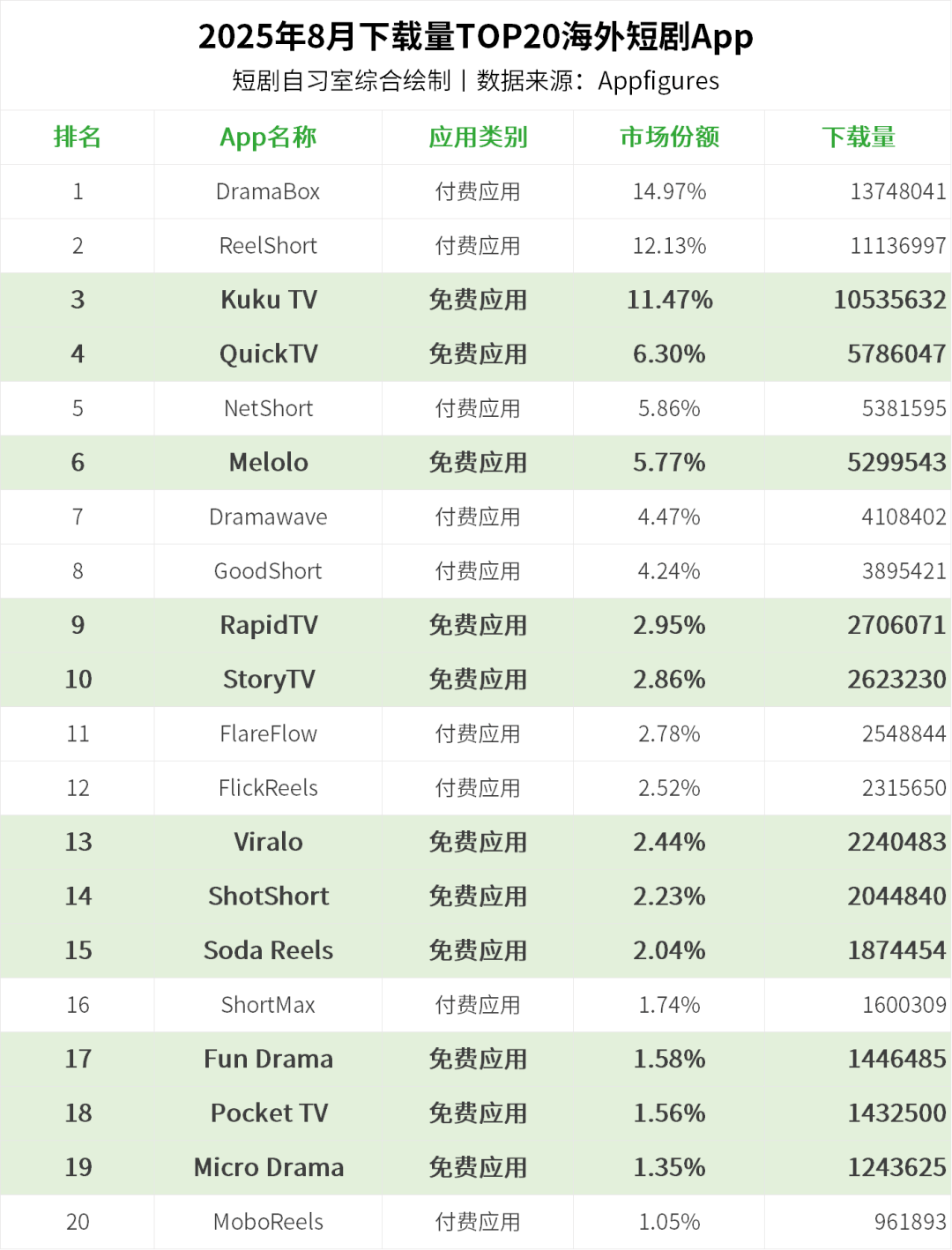 当前海外短剧平台排名情况拆解 [2025年9月份] - 免费版短剧
