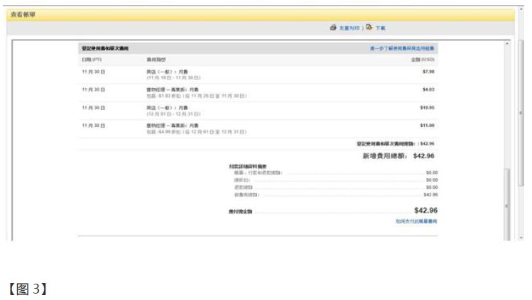 查看的账单,单击“显示”,页面将会直接跳转至月度账单页【图2】,不但可