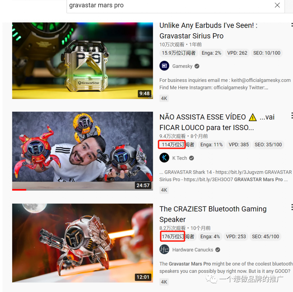 做营销时间长了就发现,单纯的突出产品的卖点和差异化并不能支撑住高溢价,且KOL和媒体并不一定针对产品的差异化买账来做免费推广。所以我在上文建议每一款产品都赋予他们一个人物故事,有性格有喜怒哀乐,也建议在造品时候跟大的IP联名制作噱头用来传播。当我们有除了产品端的差异化之外的东西,而这些东西毫无疑问能够打动KOL和编辑。且他们在创作视频或者文字内容时候就可以把品牌IP故事进一步深化,所有人都喜欢有趣的故事,都喜欢自己做出来的内容有更多深挖的内涵。试想一个KOL在推荐一款产品时候先讲IP故事,唤起受众内心针对某个科幻IP的记忆并有了共情,配合重力星球官方制作的IP视频和场景宣传图,这样就能使我们的营销不再单调的讲述产品差异化。大范围宣发:在前文我们分析重力星球的三次众筹的站外推广时,我发现重力星球并没有大规模的做PR。每次都会找一个例如Digitaltrends 和engadget大媒体发布,再加上十来个小媒体,这样的产品宣发其实很局限。当然我能理解因为众筹服务商拿着有限的预算就只能紧着转化最强的youtube 和广告来做为主战场。但是品牌方其实现在应该警醒一下,众筹就是宣发,需要用足够的曝光来做几个顶级媒体的发布,诚然这样会花费几万美元的费用在PR上,但是他们带动的曝光以及示范效应不可低估。在我博客去年三月份的文章:我是如何开发到免费的千万级youtube网红 Linus Tech 里面云丽的例子表明,大媒体的文章能够有效撬动大的KOL, 是个很强大的背书。媒体发布后再去拿着背书去找大的KOL成功概率和免费的概率会非常高。其次之前说的产品IP故事也能使得大媒体发布的效果和噱头更加强大,媒体都喜欢追逐热点,当大媒体发布后就会发现大大小小的几十上百家媒体都会发布。精准打击:大范围宣发是为了大面积的曝光,精准打击是为了确认目标受众的覆盖。既然面对的受众是科幻迷和游戏玩家,漫画迷,那么我们就知道他们经常待的社群,经常看的文字媒体,用的APP,看的Youtube KOL等。针对这一波人当然在宣发时候就要触达这一波人,在后续KOL营销和内容营销广告的时候也要针对这一波人进行轰炸。当然有条件的情况下针对不同的人群制作不同的宣传素材和推广方案,这个就是后话了。但是说了这么多其实我会发现,以上我的所有建议都是单纯idea, 真正实操可能需要品牌方超一般水准的营销推广部门来做对接。但是从两次众筹都找的服务商来看,官方可能并没有足够的人员实力来做,融资的甲方更加倾向外包,可能只有官网运营人员是齐全的。针对重力星球我作为一个外行人,用了几个小时的思考可能就这样了,希望能给大家一些启发。近些年很多在国内做的不错的公司开始做国外市场,但是没做起来的居多。比如猫王(Muzen),比如很多国内的众多小家电品牌等,究其原因可能最初在国内的成功让营销人员感觉国外也是一样的打法。所以委派一个国内营销专家做国外市场,但是毫无疑问他们都挂了,海外推广虽然兴起十多年,但是用国内的思维来打国外市场那是开玩笑。且国内能卖起来的产品,国外受众不一定吃这一套,反之亦然。