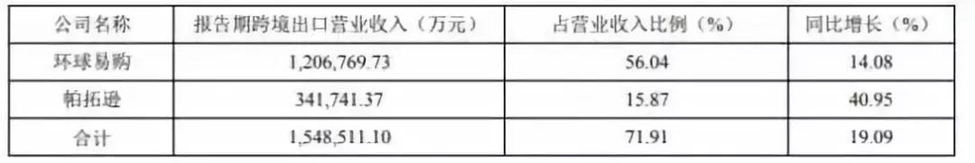 此外,报告还显示,在去年,跨境通跨境出口业务实现营业收入155.48亿元,同比增长19.09%,该部分营业收入来自环球易购和帕拓逊。
