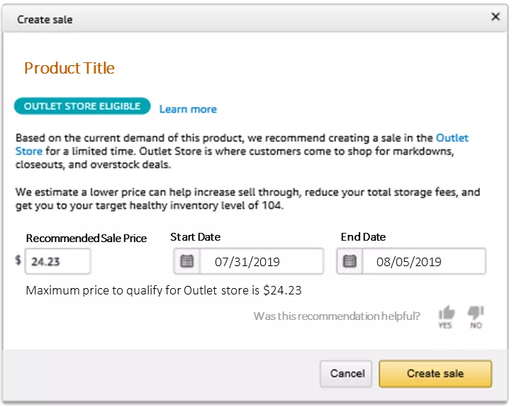 Outlet对卖家的帮助有目共睹,根据2019年5月美国卖家问卷调查的结果: •77%参与调查的卖家表示,报名参加Outlet Deals的ASIN销量有所增加 •38%参与调查的卖家表示,报名参加Outlet Deals的ASIN销量是平日的两倍或者更多 •卖家对不需要支付任何额外费用就能参加Outlet Deals表示满意 Outlet升级,自主报名 这次, 我们为各位带来的是可在卖家平台自主报名的Outlet升级版! 大家一起来看看有什么新变化吧! 账户类型 •所有卖家评分高于3.5分并且使用FBA亚马逊物流服务的专业账户 折扣类型 •原来: 只有Outlet Deals, 即被限时(通常是2周) 放置在Outlet页面上的促销产品 •现在: 不仅有Outlet Deals, 还有Outlet sales, 即由您通过降价而创建的常规价格促销产品 报名方式 •原来: 卖家只能在收到邀请邮件之后, 进行手动申报选品 •现在: 针对符合条件的产品, 卖家可以按照如下步骤, 在卖家平台自主创建Outlet Deals 如何创建Outlet Deals 1.在卖家平台, 点击“库存”, 在下拉菜单选择“库存规划”, 并点击“管理冗余库存”; 2.在符合条件的产品右边的下拉菜单, 选择“Create Outlet Deal”(创建清仓促销); 3.在弹出窗口中, 将您的Outlet Deal价格输入到Outlet Deal最高价格右边的输入框里。特别提示,您输入的价格必须小于或等于最高价格; 注意: Outlet Deal推荐的促销价格会考虑该产品的历史最低价格,如果产品价格在促销开始前被更改, Outlet Deal的最高价格可能会随此波动。在Outlet Deal开始后, 如果产品的销售价格高于推荐的最高价格, 该促销中的所有产品将会自动被取消。 4.检查Outlet Deal的开始和结束日期; 5.点击“提交”。 如果提交成功, 您会看到“Outlet Deal提交成功”的信息,如果您看到“Deal的最高价格是$X”, 请你更改您的Deal价格到小于或等于最高价格的水平。 注意: 不是所有提交的Outlet Deals都能通过审核。如果你的Deal通过了审核,您会收到自动的电子邮件通知。我们鼓励您在您提交Deal后的当周周五, 查阅您的Outlet Deals报告。您可以点击卖家平台“报告”标签页, 在下拉菜单点击“库存和销售报告”, 或打开页面左手边的“销售”区域, 找到该报告。 如何取消已经提交的Outlet Deal 在亚马逊完成审核之前, 您可以取消已经提交的Outlet Deal: 1.在卖家平台, 点击“库存”, 在下拉菜单选择“库存规划”, 并点击“管理冗余库存”; 2.在符合条件的产品右边的下拉菜单, 选择“创建Outlet Deals”; 3.如需取消提交,可以直接点击“取消Outlet Deal”; 4.如果只希望更改价格, 则可以在修改价格后点击“更新”。 注意: 如果您希望取消一个已经开始了的Outlet Deal, 请联系卖家支持团队。由于一个Outlet Deal促销中可能有多个产品,这种情况下,如果您需要取消促销,则所有的产品促销都会被取消,所以卖家应该谨慎取消。 如何创建Outlet sale 1.在卖家平台, 点击“库存”, 在下拉菜单选择“库存规划”, 并点击“管理冗余库存”; 2.符合Outlet条件的产品下方会有“OUTLET STORE ELIGIBLE”的标记; 3.在这些产品右边的下拉菜单中,选择“创建促销”(Create Sale); 4.在弹出窗口中, 将您的Outlet sale价格输入到在sale最高价格右边的输入框里,特别提示,您输入的价格必须小于或等于最高价格才有可能会被Outlet Store选中; 5.检查Outlet sale的开始和结束日期; 6.点击“提交”。 注意: 并不是创建的所有Outlet sale都会被Outlet store选中。Outlet将会根据客户对产品的需求等因素挑选Outlet sale。此外,选中的产品在Outlet上的直降促销将不会超过两周。 常见问题解答 1.一个ASIN如果同时被创建Outlet Deals/ Outlet sale和其他折扣类型, 两者的折扣会被叠加吗? 会。Outlet Deal和Outlet sale的折扣, 会与为该ASIN设置的其他类型的折扣同时叠加, 比如说, 优惠券、促销、 折扣价格、 企业价格和赠品。举个例子, 对于一个100美金的产品, Outlet Deal提供50%的折扣, 同时提供5%的直降, 50%和5%的折扣会被叠加,总折扣为55美金。 •标准价格: $100 •Outlet Deal折扣: 50% •直降折扣: 5% •总折扣: (100 x 0.5) + (100 x 0.05) = $55 2.为什么我没有看到Outlet推荐? 只有卖家评分高于3.5分,并且使用亚马逊物流服务的专业卖家才能参加Outlet活动,且顾客对这些产品的需求及其他因素也将决定该产品是否有创建Outlet Deal或者Outlet sale 的推荐。您可以在“管理冗余库存”页面, 看到符合Outlet促销条件的产品。特别提到的是,可参加Outlet促销的产品需具备以下基本条件: •在售且在亚马逊库房中有库存 •在亚马逊具有销售历史, 并且起码有3星的产品评分 •新货 •符合亚马逊买家商品评论政策和参考价政策 注意: 并非每件合格商品都会收到亚马逊的清仓推荐。此外,我们会对产品进行每周评估,因此在本周收到推荐的产品, 下一周可能就不会收到推荐。做过Outlet Deal促销的产品, 在促销结束后的90天内, 也将不会再收到Outlet Deal的推荐。不过,您可以通过访问“管理冗余库存”页面,找到有Outlet推荐的产品。 3.为什么我提交的Outlet Deal没有通过审核? 提交的Outlet Deal没有通过亚马逊审核的原因可能包括: •这个产品已经报名其他类型的Deal(例如: 秒杀)且其促销时间与Outlet Deal的时间冲突 •产品图片不符合品类要求,可以参考商品图片要求获得更多信息 •顾客评分低于3星 •处于缺货状态 4.为什么我的Outlet Deal在审核通过后被取消? 最可能的原因是,您的促销价格高于Outlet Deal推荐的最高价