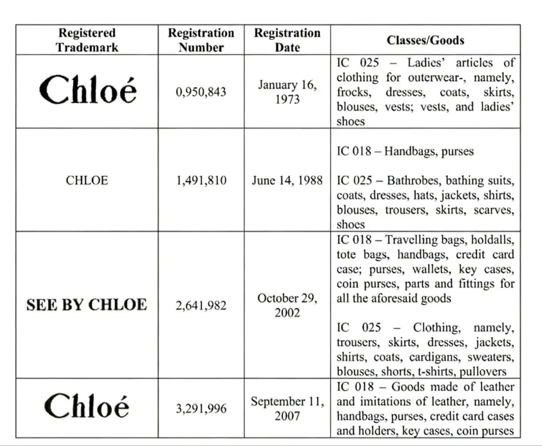 原告Chloe S.A.S.(蔻依)1952年由Gaby Aghion创立于巴黎,是历峰集团旗下法国顶级奢侈品牌。以法式浪漫优雅风格著称,主营高端女装、包袋、鞋履、香水及配饰,全球分销网络完善,兼具经典与现代设计美学。