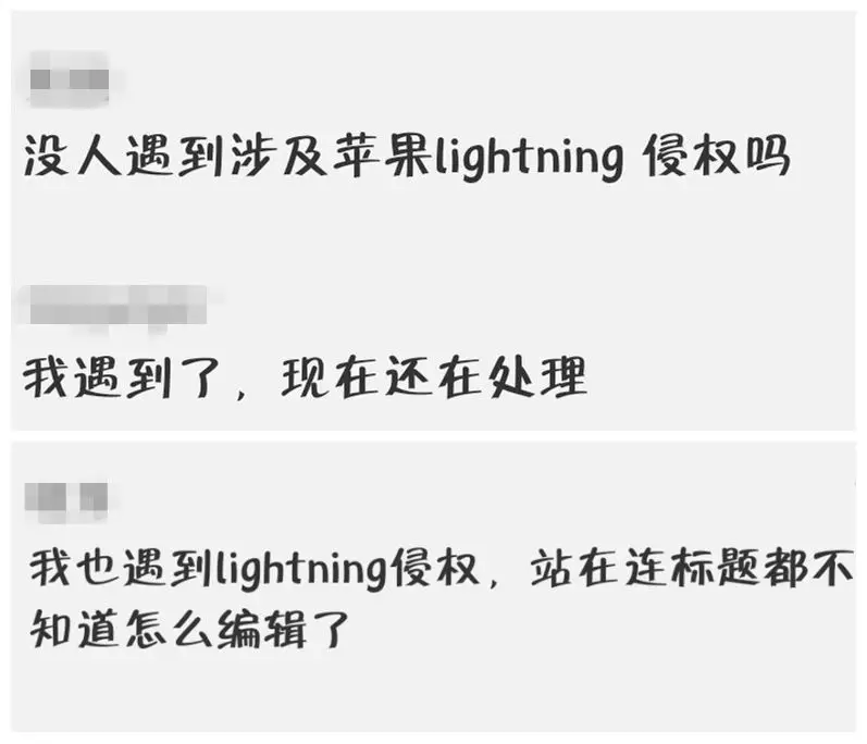 据了解,出现lightning侵权情况的卖家并非个例,不少卖家都遭遇了同样的情况。有卖家表示现在还在处理,更有卖家吐槽说,现在连标题都不知道怎么编辑了。