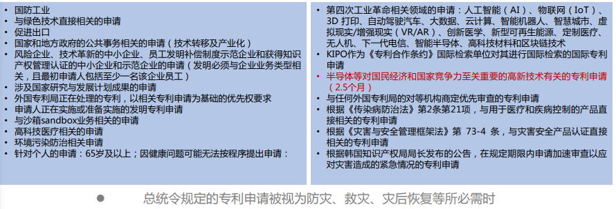 依据《韩国专利法》第61条,韩国特许厅厅长可允许审查员对下述申请优先审查: