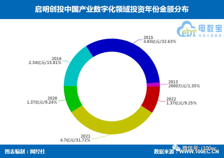 据网经社“电数宝”(DATA.100EC.CN)电商大数据库监测数据显示,2013年6月11日至2022年1月24日,启明创投累计参与了10起产业数字化领域的投资,涉及公司分别为:易买工品、商越、七公里、铁甲、找塑料等。