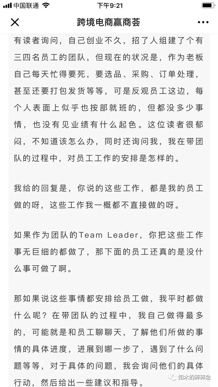 不管是那种情况。你在最开始的阶段要做的,是你自己会的情况下你要教会各个部门的员工,教会运营人员如何运营,教会采购人员如何采购,教会选品人员如何调研产品,教会打包人员按照什么方式方法怎么打包。这都是一个刚创业的小老板要做的。其实像帕拓逊环球千岸这种大公司的小部门组长要做的,工作内容其实也是这样的。