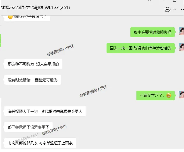虽然小编此前的报道中也采访不少遭遇“退运”的货代,得到的反馈是说“由于此次查验潮爆发的时效损失问题,属于不可抗力因素,很少货代会去承担。”