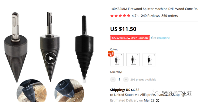 2,wood splitting drill bit,月均搜索量直线上升,很多人可能都没看过这个产品,这个产品我之前跑过谷歌购物和谷歌搜索,出单和盈利情况都不错,但是因为速卖通发货太慢,导致paypal纠纷太多,后面就没跑了。