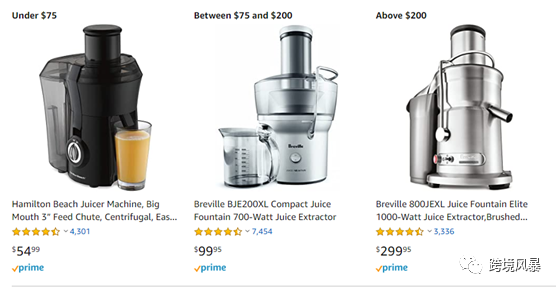 你可以注意到,搜索词“juicer”中排名最高的产品比排名前3位的其他产品的客户评论更少,客户评级更低,销售排名更低。但是它仍然排在第一位,因为它的评级也还算不错,而且定价也远低于同类产品的平均水平,不可否认的是,产品评论仍然很重要,价格并不是决定产品排名的唯一因素。