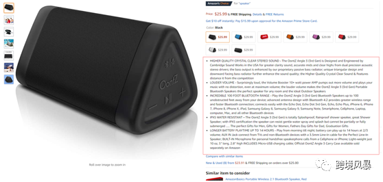 图片大小和质量是另一个影响排名的因素,如果你访问最畅销产品的页面,你会注意到大多数都有高质量的图像,可以放大并仔细查看产品的一些明细。1000×1000像素的图像尺寸允许亚马逊向客户提供如下所示的悬浮缩放功能,这对转化率有显著影响。