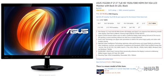 另一个正确使用五点描述的产品例子是【华硕电脑显示器】,它在“电脑屏幕”一词上排名非常高: