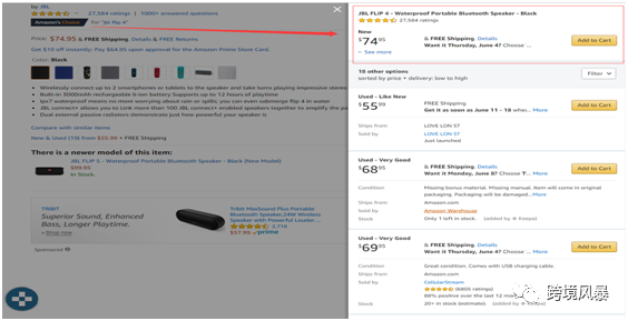 我们在之前的介绍中讨论了亚马逊的排名算法是如何使用预测和实际转化率来决定在搜索结果中显示哪些产品的?亚马逊用来确定预测转化率的最大的排名因素之一是价格——它们知道顾客都倾向于寻找最好的交易。亚马逊将价格作为选择在购买框中显示哪种产品的主要因素,购买框是包含“添加到购物车”按钮的页面的一部分。
