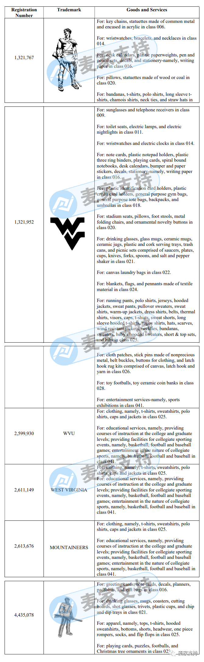 WVU董事会拥有十多个WVU美国联邦商标,包括但不限于服装、帽子、首饰、玩具、锦旗和袋子等产品。